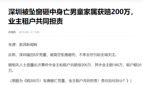 1、窗扇坠落伤人,导致巨额赔偿