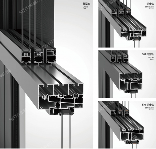 旧推拉窗结构简单、材料薄,安全性、防水密封性备受诟病。索顿全景推拉窗采用革命性线轨技术,针对中高层阳台在亚热带多风多雨的气候环境设计,轨道加粗加厚、增加加强筋,并且包裹滑轮组,大大提高整体强度并防止脱轨。轨道加盖板,表面平整美观又有利于密封;窗扇下方是实心的挡水边,与轨道槽口形成密封层,有效阻挡风雨。
