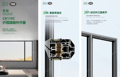 而推拉窗厂家索顿最近推出的索智CK116C纤框隐扇外开窗,更汲取了现代时尚潮流和力学设计精髓,其活动扇框、纱网、执手、排水孔等均在正面视野中隐藏起来,颜值相当高。而在结构上得到加强,从而获得更高的安全性和密封性。