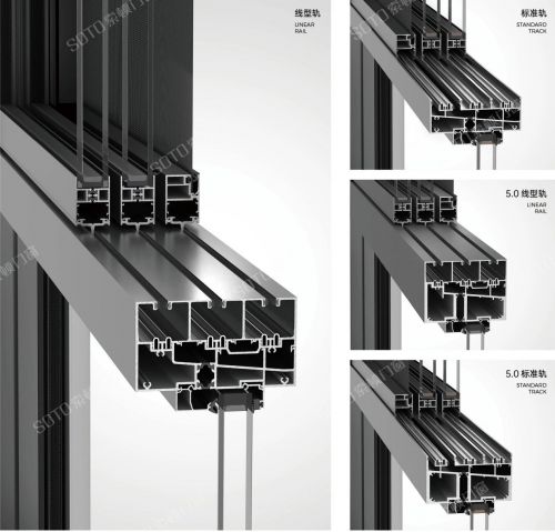 中高层阳台风雨比低层的大,选推拉窗一定要选高性能的,以确保安全、防水好。建议选索顿线轨全景推拉窗,该系列采用革命性的线轨技术,轨道加粗加厚,增加多道加强筋,强度和抗风压能力倍增。窗扇下方是实心的托臂,与轨道槽口形成直接挡水板,有效提高气密性和水密性。轨道盖板平整方便添加密封件,窗扇数量少缝隙少,所以整体的密封性能比传统推拉窗要高。