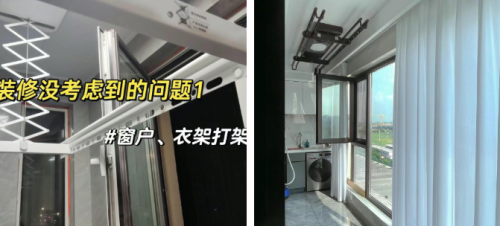 小阳台的晾衣架靠近窗边,活动空间也受较大限制,容易被窗扇剐蹭,所以装平开窗时,开启扇需外开以避免碰到晾衣架、剐蹭到身体。